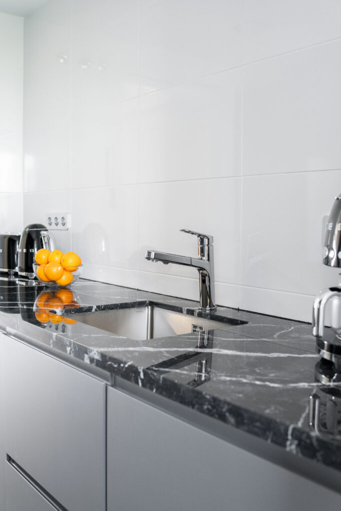 A luxury penthouse. Two bedrooms, two bathrooms, kitchen, living room, large terrace and garage space downstairs. Elevator. Heating and air conditioning. Fully furnished and equipped apartment. Infinity pool.